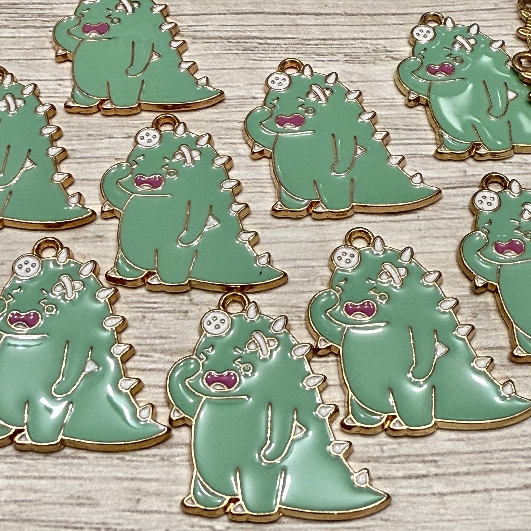 dijes de fundición dorado esmaltado
