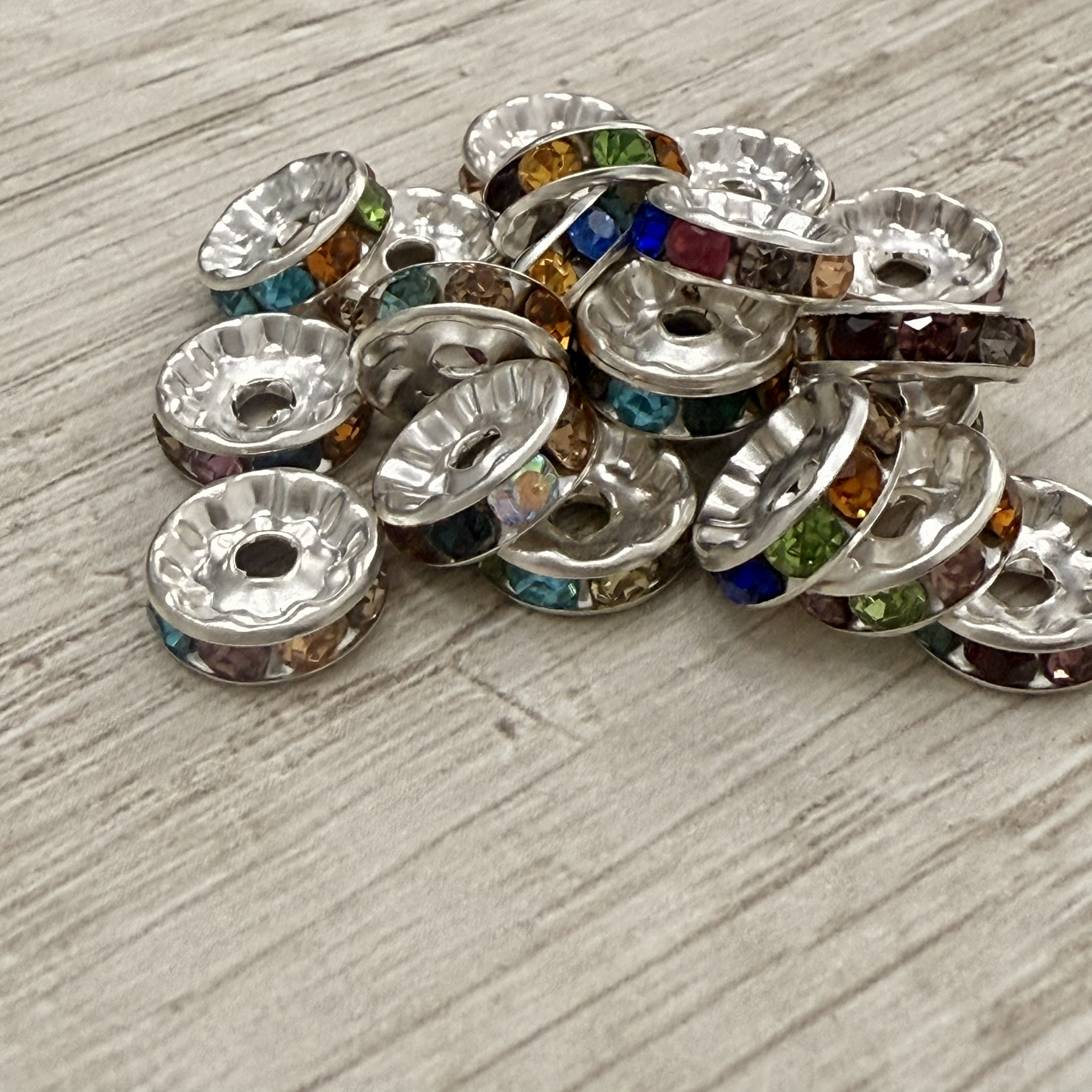 Paquete separador rondel de strass Plateado 4 mm.